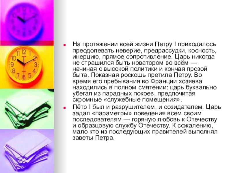 Слайд 4На протяжении всей жизни Петру I приходилось преодолевать неверие, предрассудки,