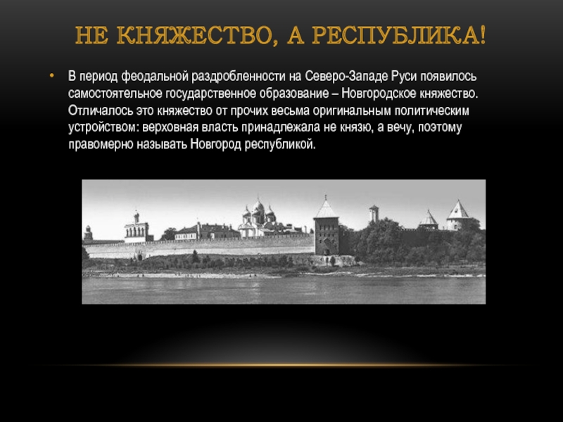 от прочих весьма оригинальным политическим устройством: верховная власть принадлежала не князю, а вечу, поэтому правомерно называть Новгород республикой.