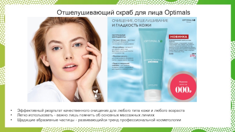 Слайд 23Отшелушивающий скраб для лица Optimals