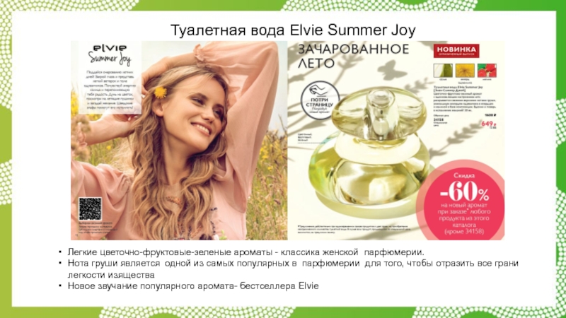 Слайд 18Туалетная вода Elvie Summer Joy