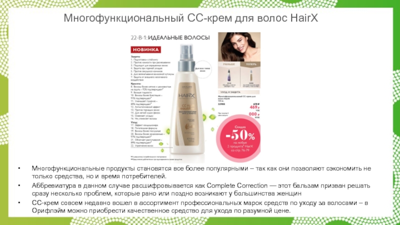 СС-крем совсем недавно вошел в ассортимент профессиональных марок средств по уходу за волосами – в Орифлэйм можно приобрести качественное средство для ухода по разумной цене.