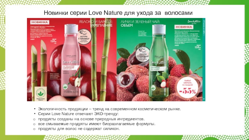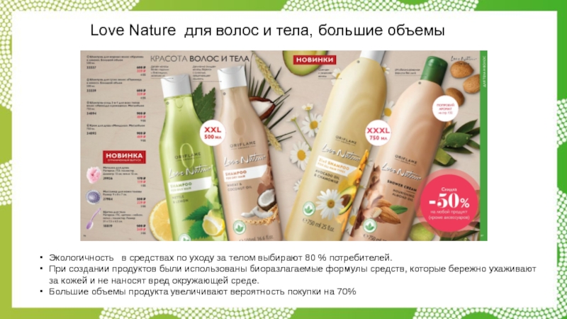 Слайд 28Love Nature для волос и тела, большие объемы