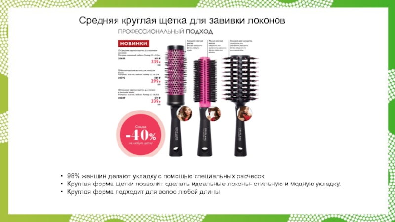 Слайд 27Средняя круглая щетка для завивки локонов