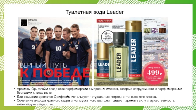 Слайд 32Туалетная вода Leader