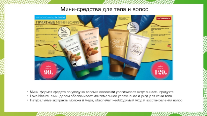 Слайд 30Мини-средства для тела и волос