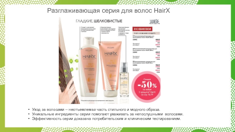 Слайд 26Разглаживающая серия для волос HairX