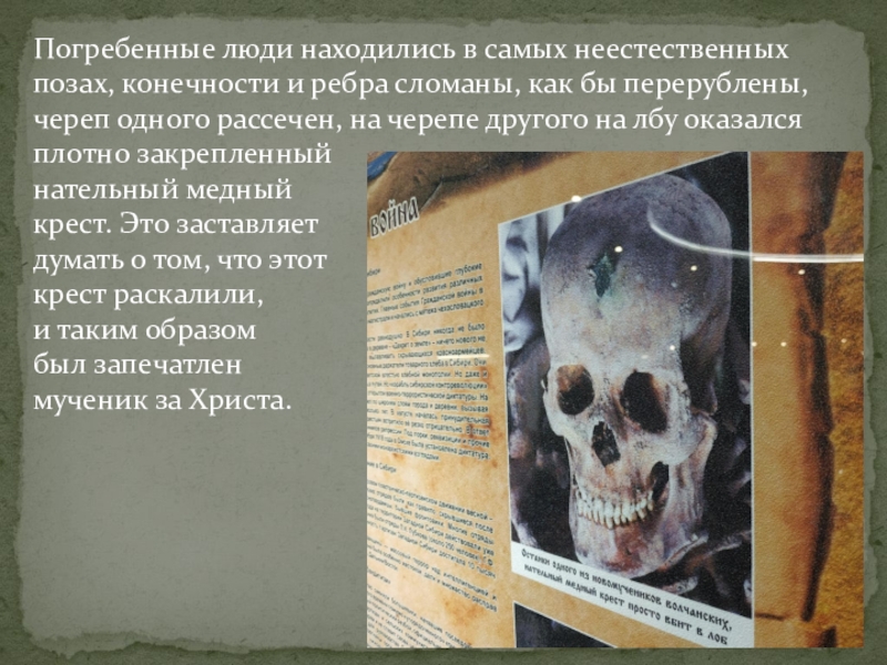 Слайд 85Погребенные люди находились в самых неестественных позах, конечности и ребра