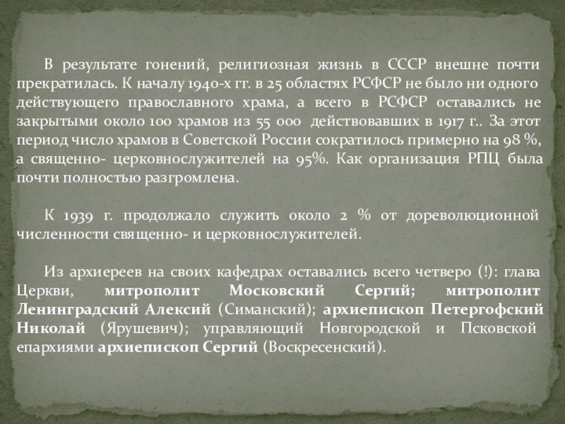ним общую беду — жесточайшие репрессии и преследования от воинствующего безбожия…