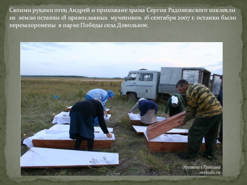 из земли останки 18 православных мучеников. 16 сентября 2007 г.