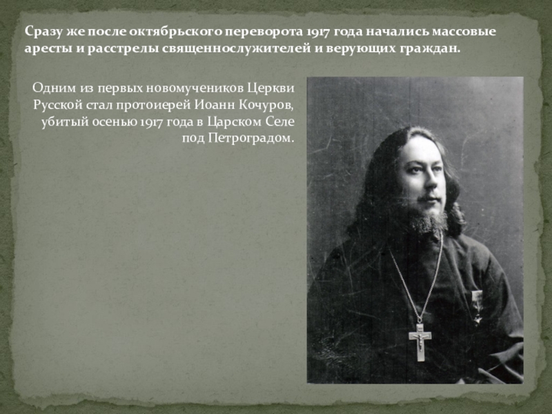 Русской стал протоиерей Иоанн Кочуров, убитый осенью 1917 года в Царском Селе под Петроградом.