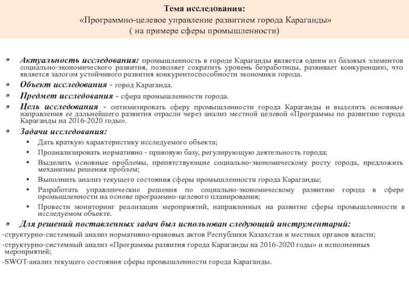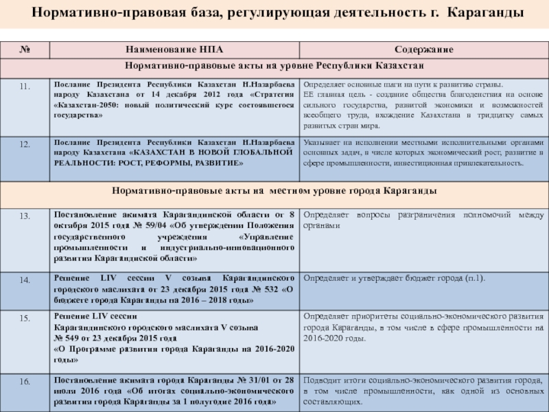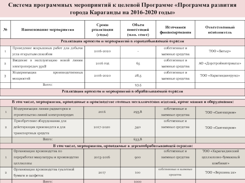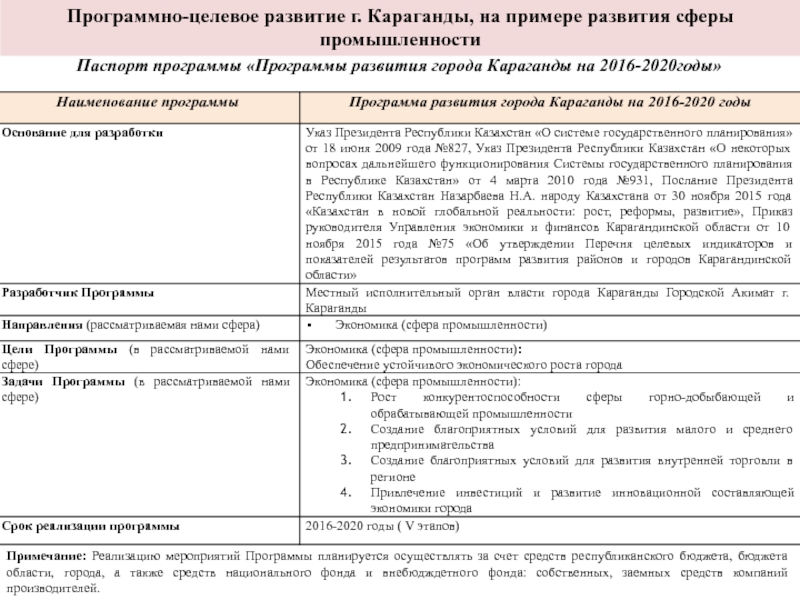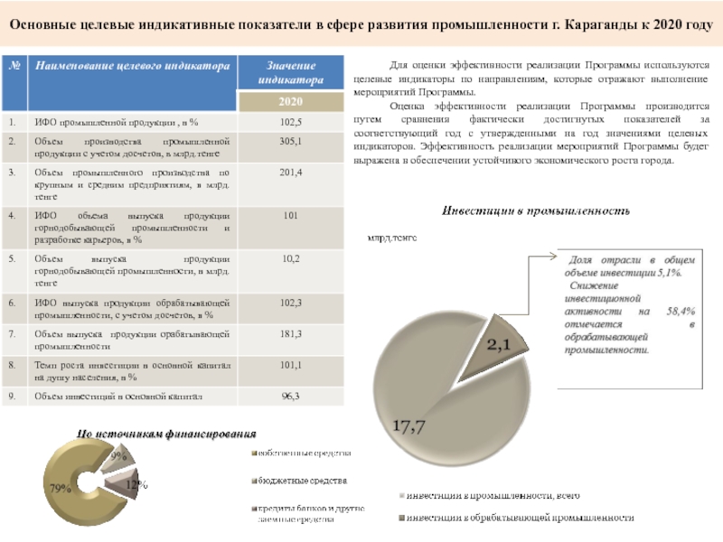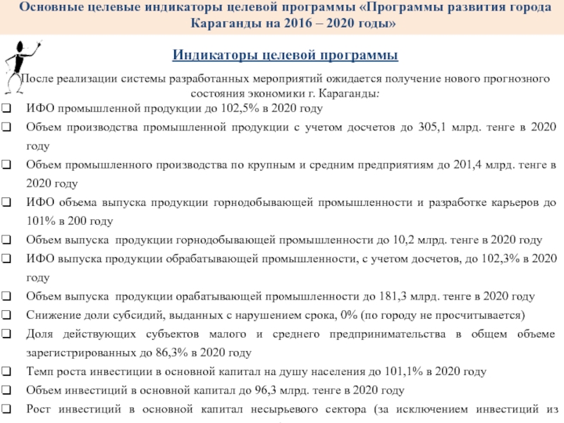 Основные целевые индикаторы целевой программы «Программы развития города Караганды на 2016 – 2020 годы»