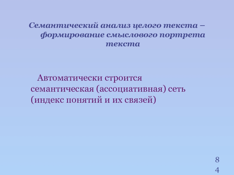 Слайд 84 Автоматически строится семантическая (ассоциативная) сеть (индекс понятий и