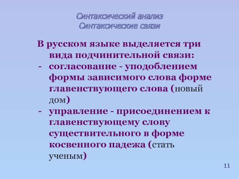 Подчинительная связь - при подчинении роль компонентов в создании конструкции