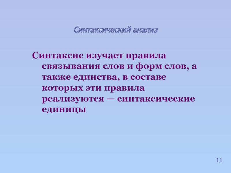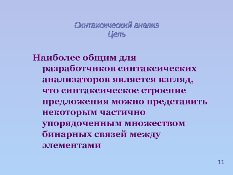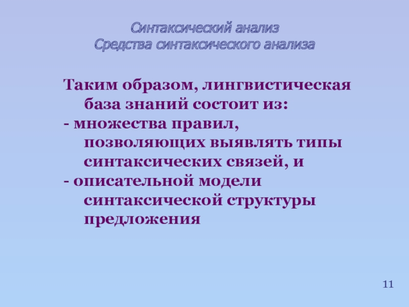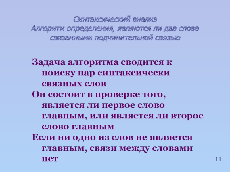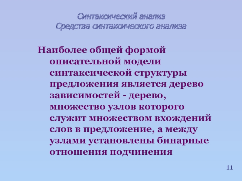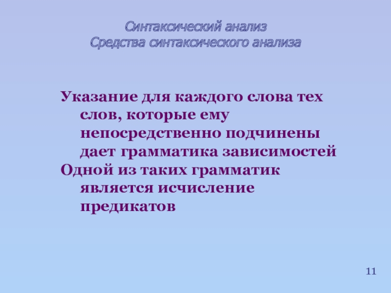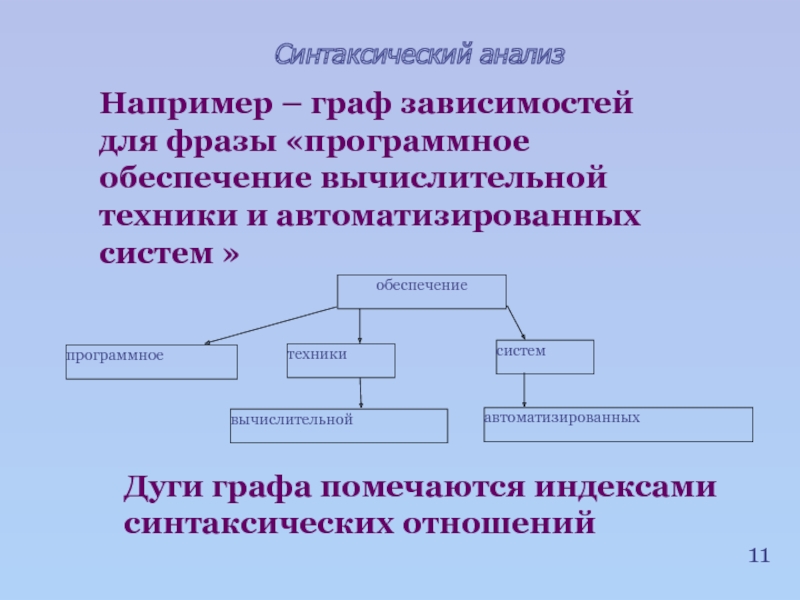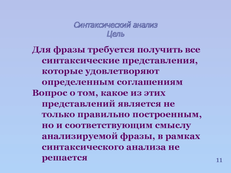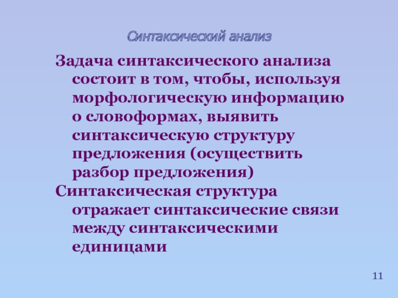 Задача синтаксического анализа состоит в том, чтобы, используя морфологическую