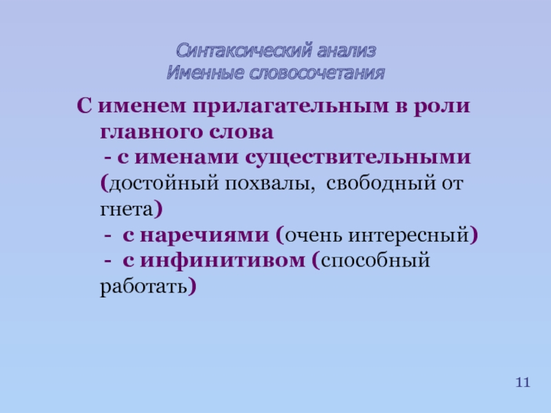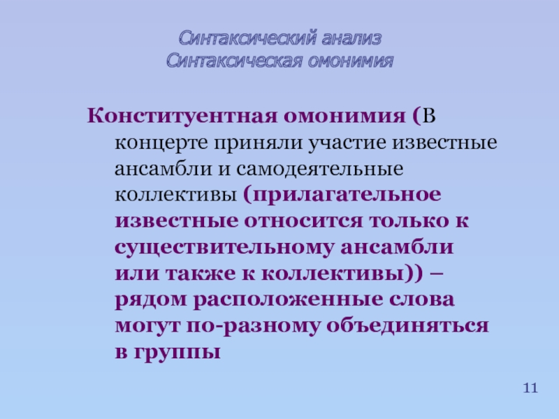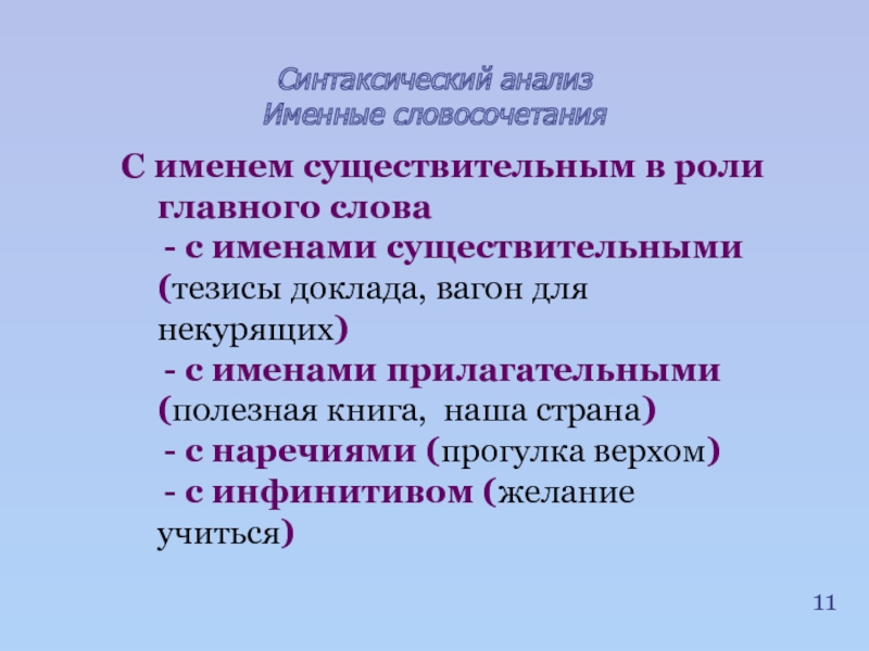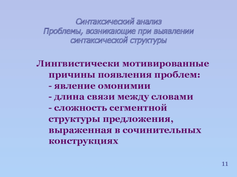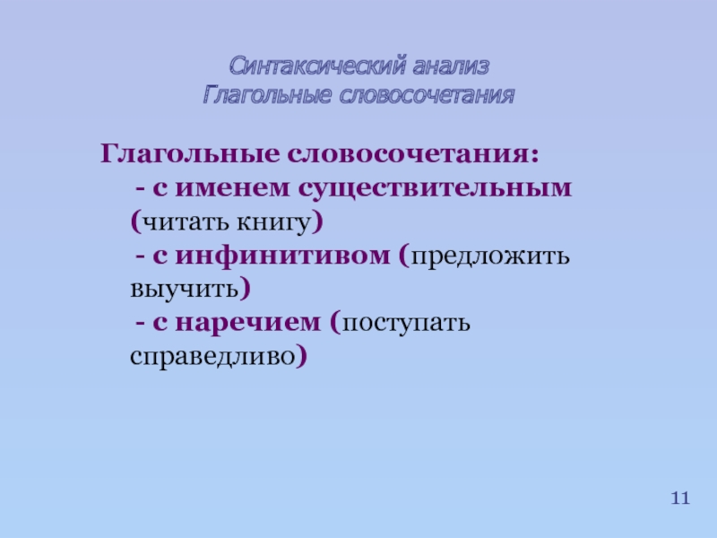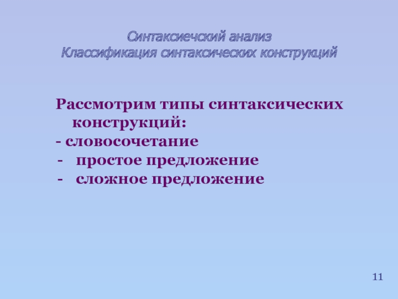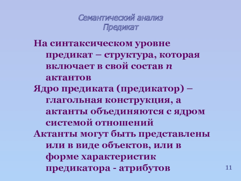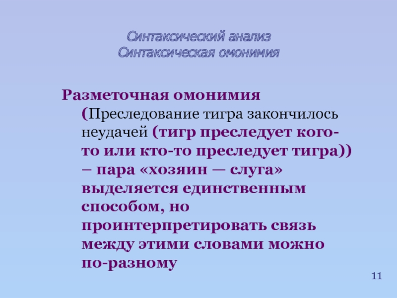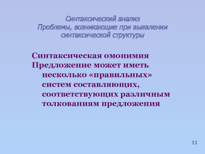 Задача синтаксического анализа состоит в том, чтобы, используя морфологическую