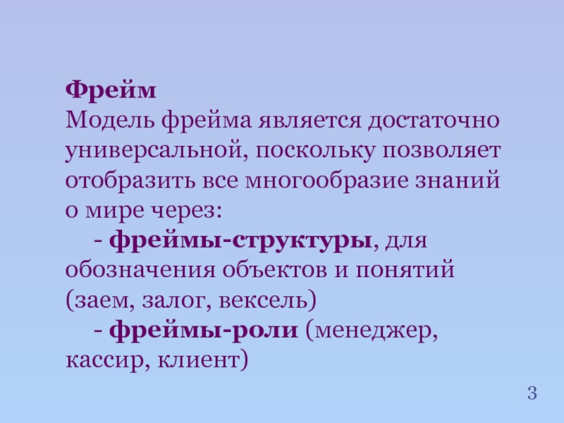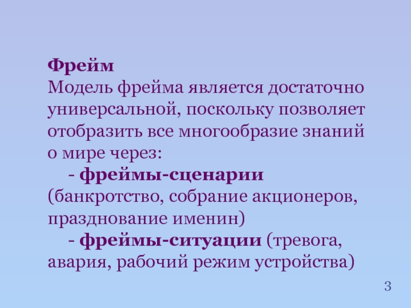Модель фрейма является достаточно универсальной, поскольку позволяет отобразить все многообразие