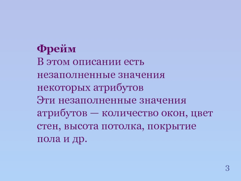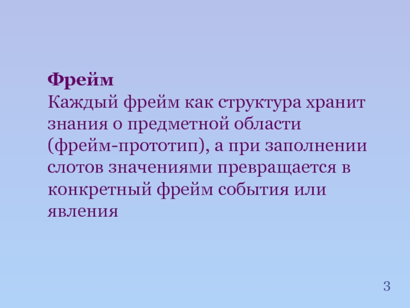 (фрейм-прототип), а при заполнении слотов значениями превращается в конкретный фрейм