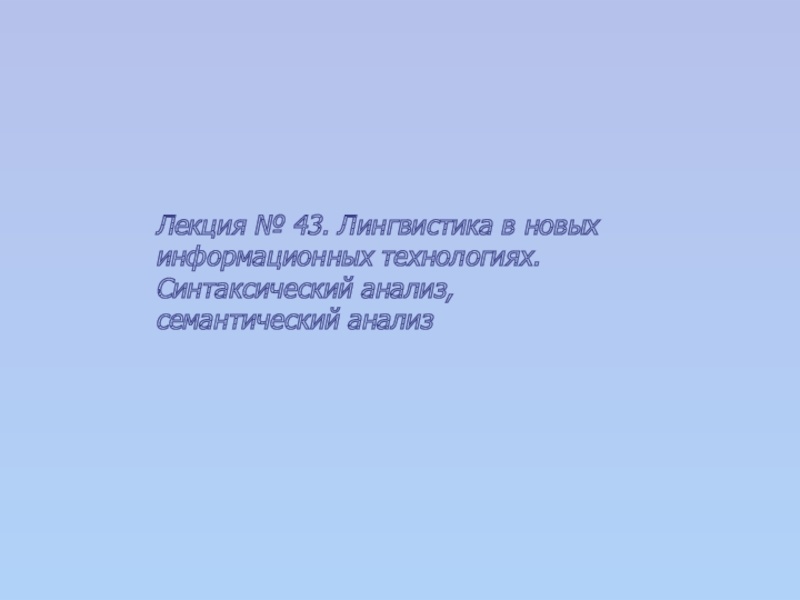 Слайд 2Лекция № 43. Лингвистика в новых информационных технологиях.