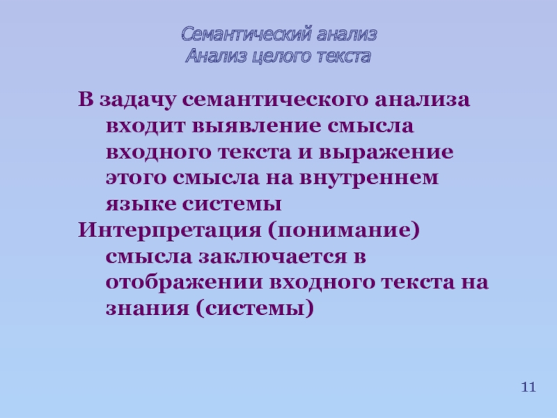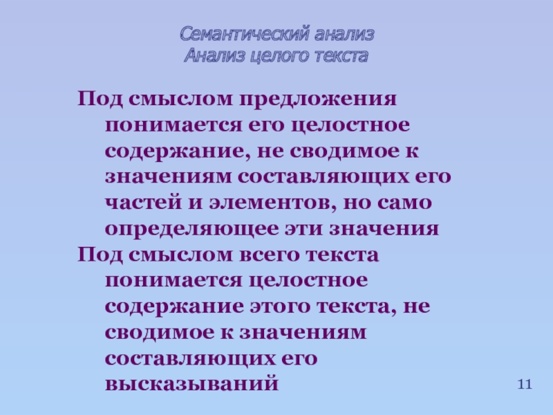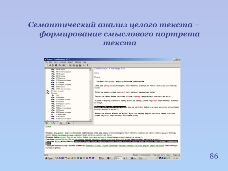 Семантический анализ целого текста – формирование смыслового портрета текста