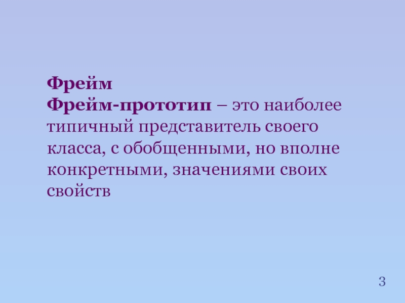 Фрейм-прототип – это наиболее типичный представитель своего класса, с обобщенными, но