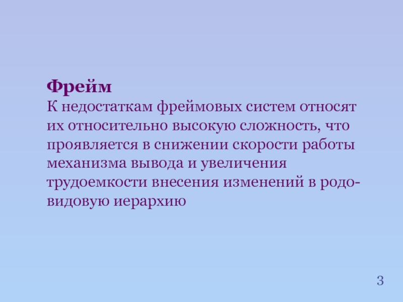 К недостаткам фреймовых систем относят их относительно высокую сложность, что