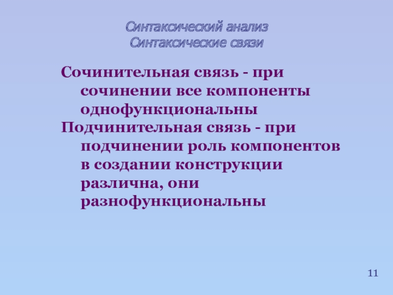 Сочинительная связь - при сочинении все компоненты однофункциональны