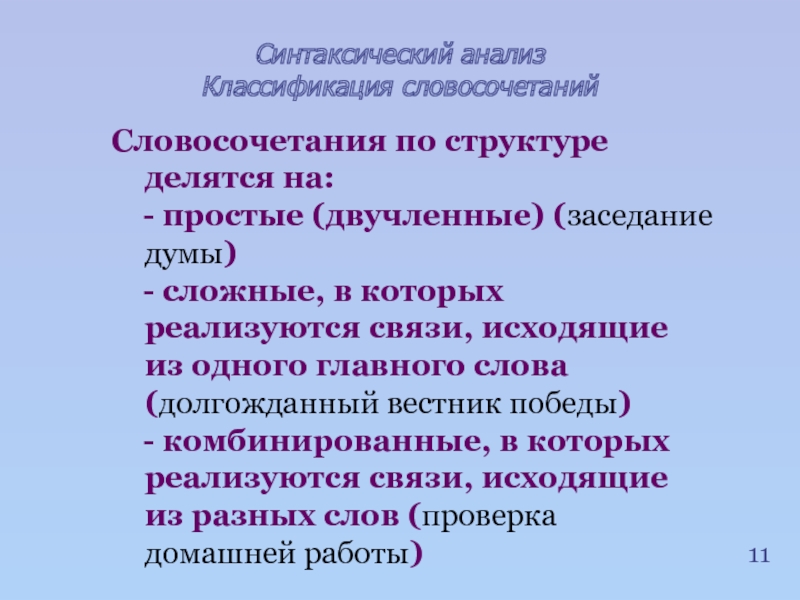 - комбинированные, в которых реализуются связи, исходящие из разных слов (проверка домашней работы)