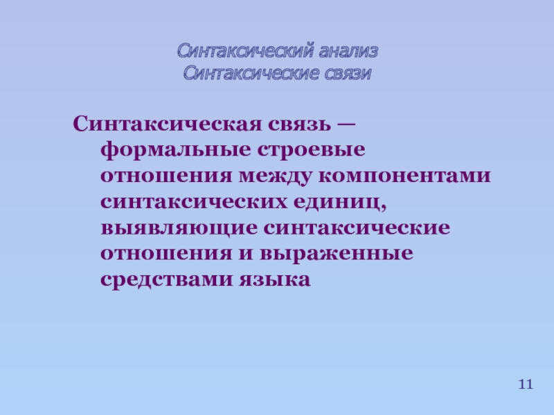 Синтаксическая связь — формальные строевые отношения между компонентами