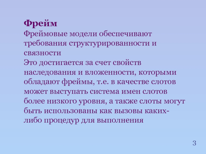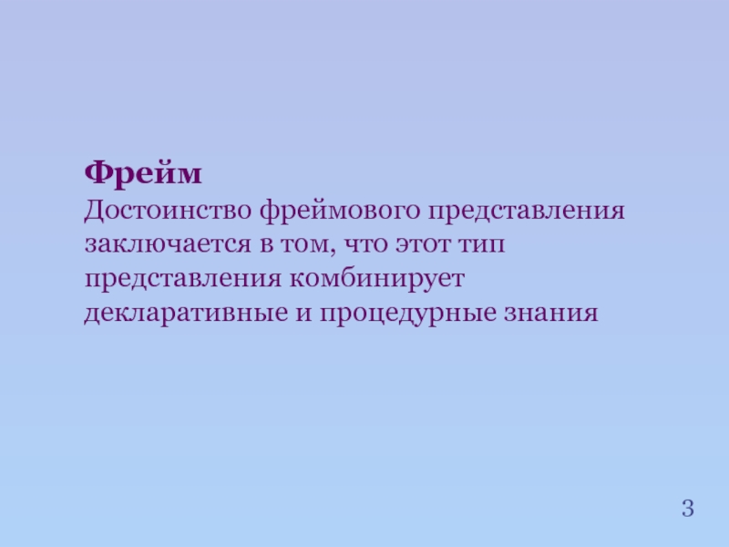 Достоинство фреймового представления заключается в том, что этот тип представления