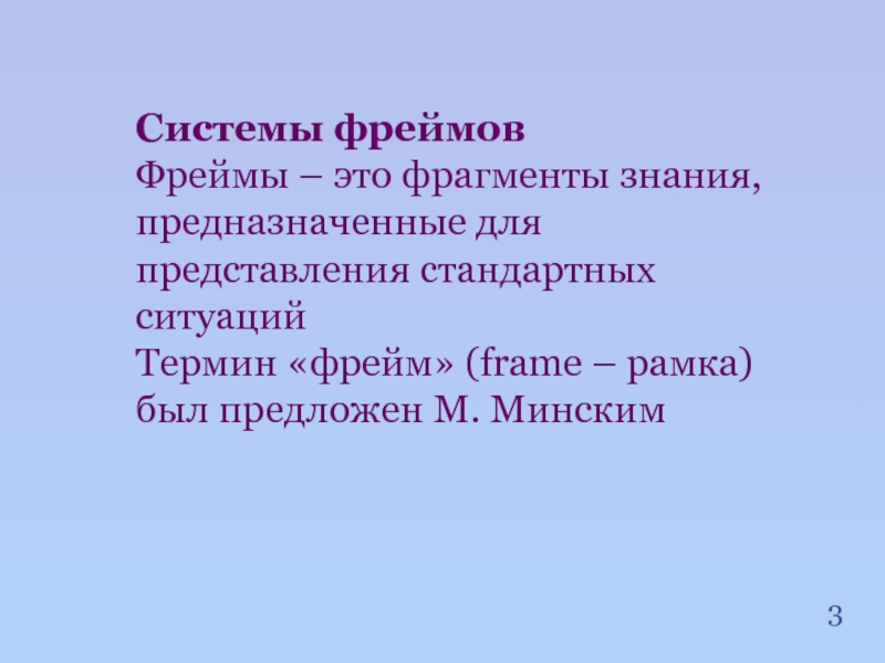 Термин «фрейм» (frame – рамка) был предложен М. Минским