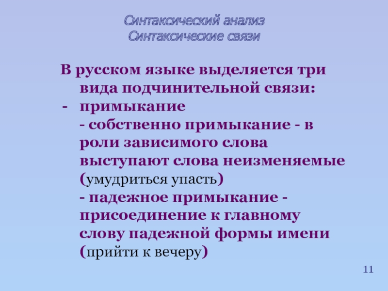 - падежное примыкание - присоединение к главному слову падежной формы имени (прийти к вечеру)