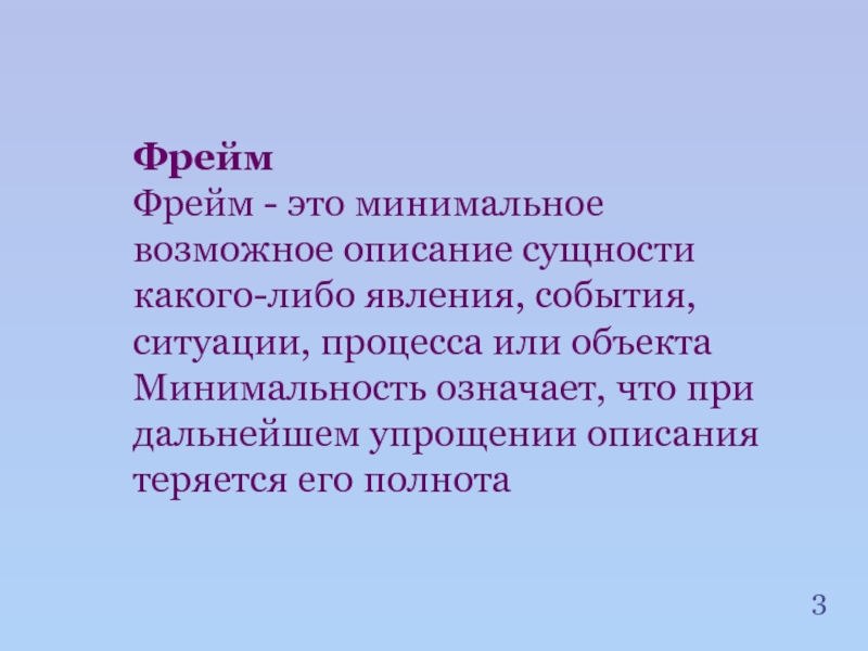 Фрейм - это минимальное возможное описание сущности какого-либо явления, события, ситуации,