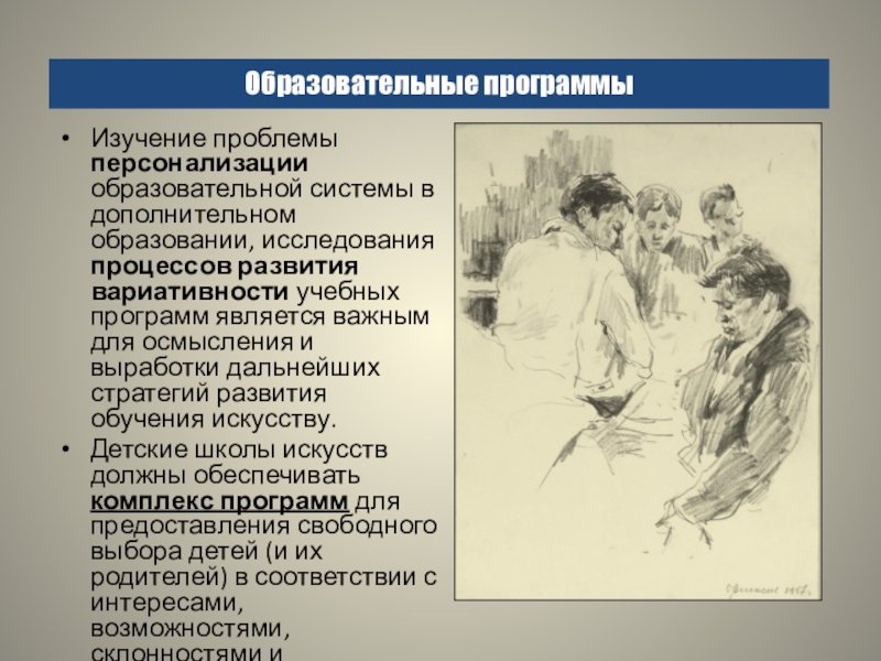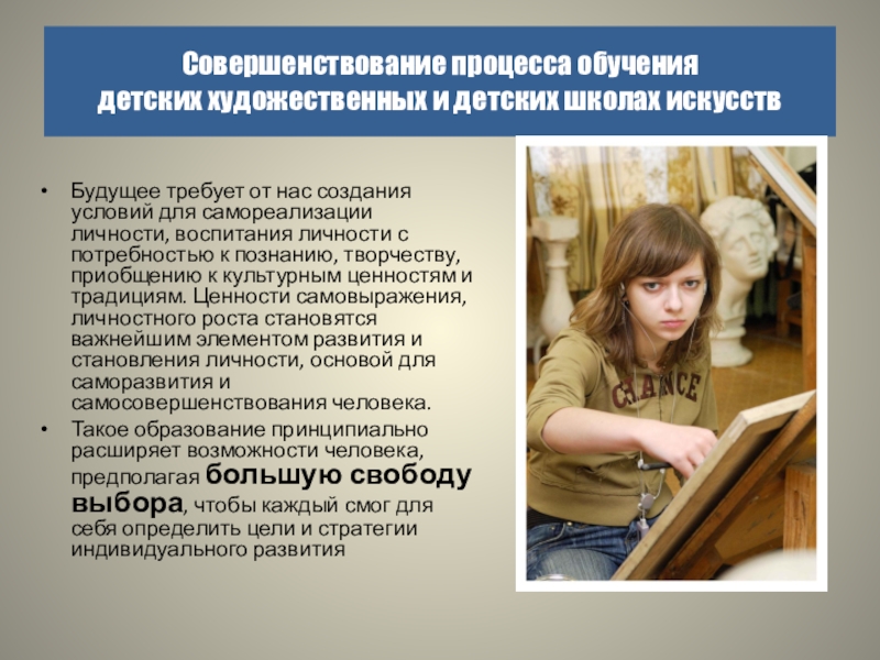 Детские школы искусств должны обеспечивать комплекс программ для предоставления свободного выбора детей (и их родителей) в соответствии с интересами, возможностями, склонностями и ценностями.