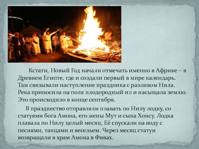Кстати, Новый Год начали отмечать именно в Африке – в Древнем Египте,