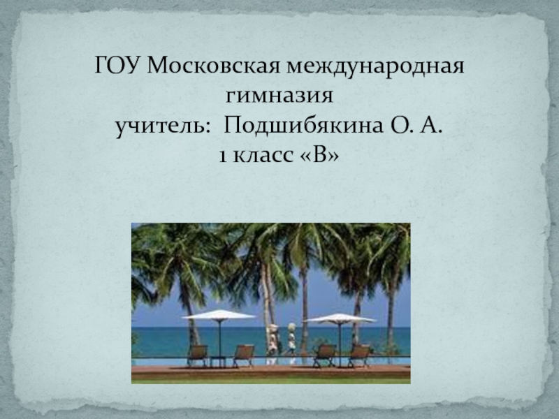 Слайд 8ГОУ Московская международная гимназия учитель: Подшибякина О. А. 1 класс «В»