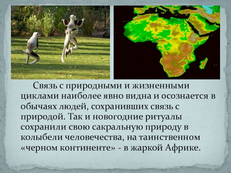 с природой. Так и новогодние ритуалы сохранили свою сакральную природу в колыбели человечества, на таинственном «черном континенте» - в жаркой Африке.