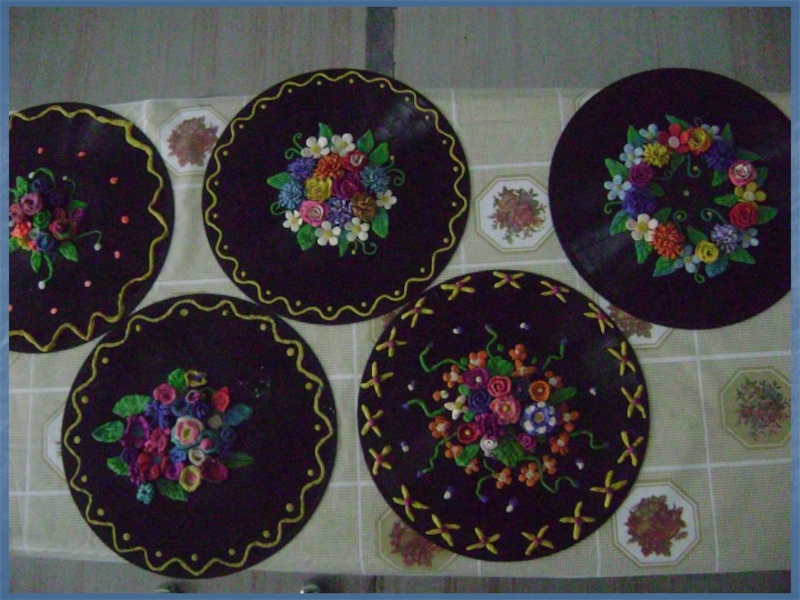 Слайд 29Объемные цветочные композиции на пластинках