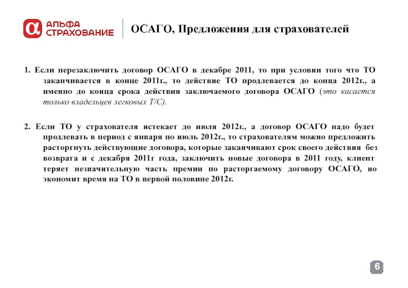помимо документов указанных в п. 15 Правил страхования по ОСАГО (а именно в зависимости от условий страхования, документ, удостоверяющий личность, свидетельство о регистрации юр. лица, документ о регистрации Т/С, водительское удостоверение), также и талон технического осмотра (далее ТО).2. Страховщик должен отказать в заключении договора ОСАГО страхователю, если предъявляемый ТО страхователем оканчивается более чем за шесть месяцев до окончания предполагаемого срока действия заключаемого договора, т.е. предъявляемый ТО по сроку своего действия перекрывает шесть или меньше месяцев от срока действия заключаемого договора ОСАГО.
