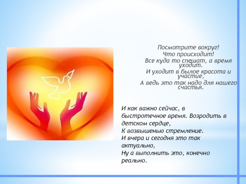 И как важно сейчас, в быстротечное время. Возродить в детском сердце,