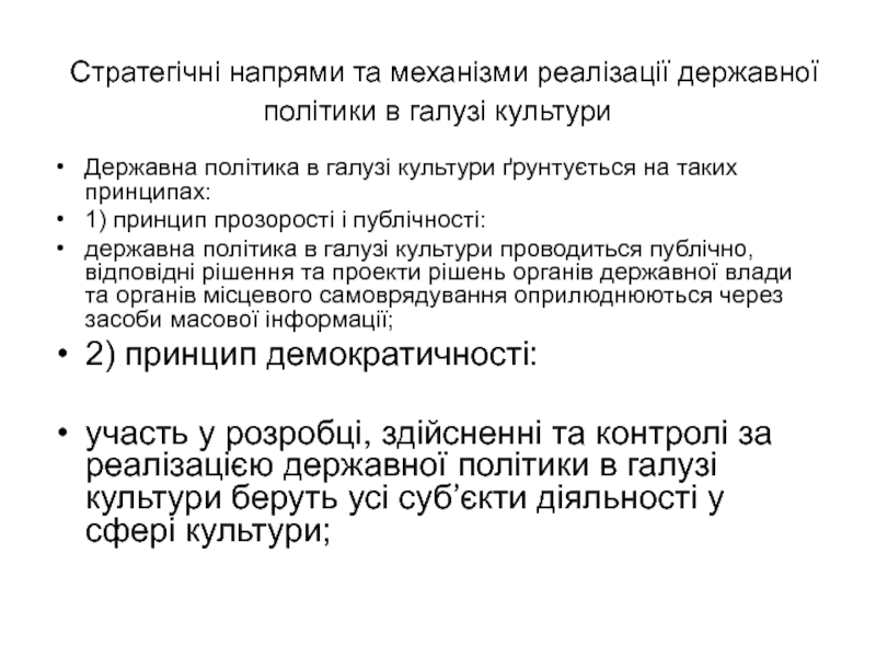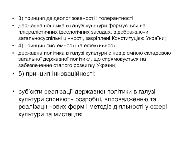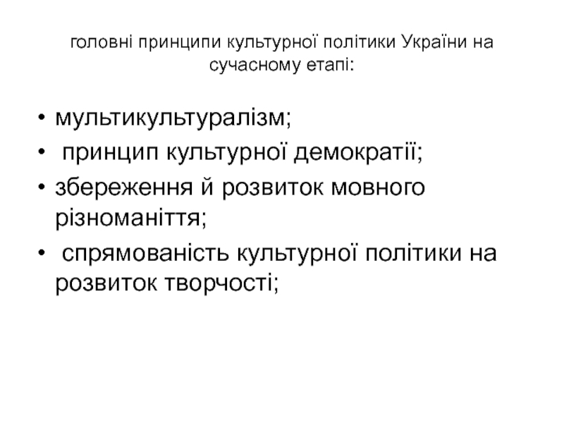 Слайд 5головні принципи культурної політики України на сучасному етапі: