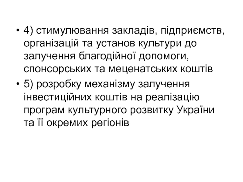 Слайд 144) стимулювання закладів, підприємств, організацій та установ культури до залучення