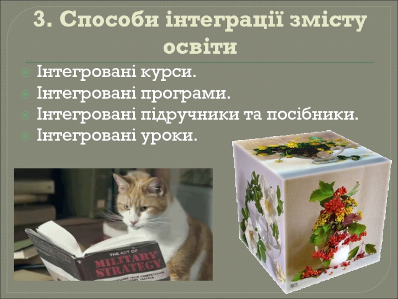 контексті підручникотворення. 3.Способи інтеграції змісту освіти. Висновки