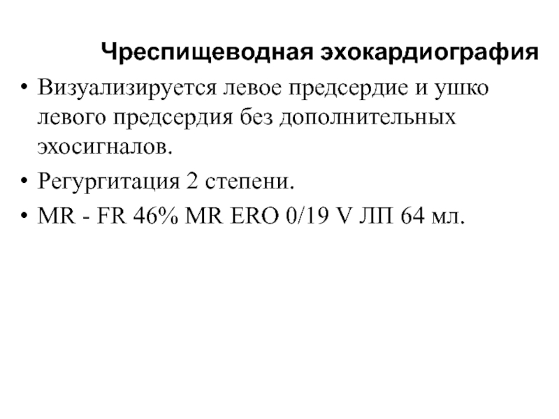 Чреспищеводная эхокардиография Визуализируется левое предсердие и ушко левого
