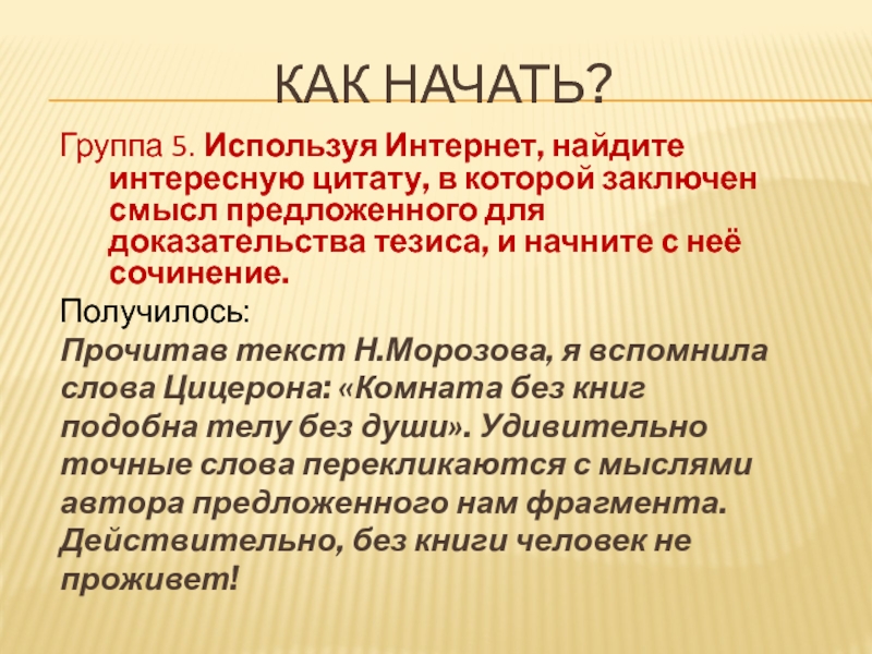 Группа 5. Используя Интернет, найдите интересную цитату, в которой