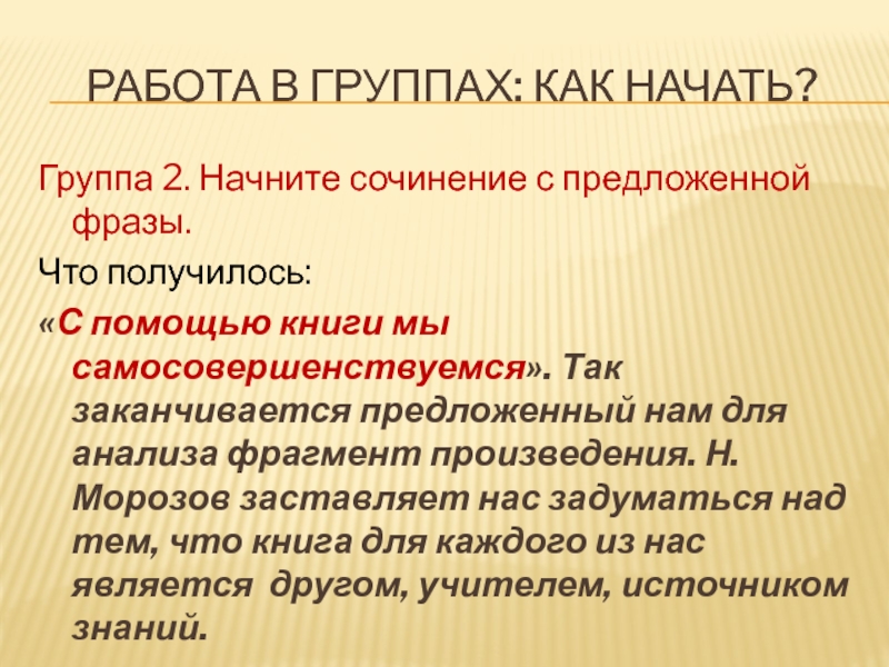 предложенный нам для анализа фрагмент произведения. Н.Морозов заставляет нас задуматься над тем, что книга для каждого из нас является другом, учителем, источником знаний.