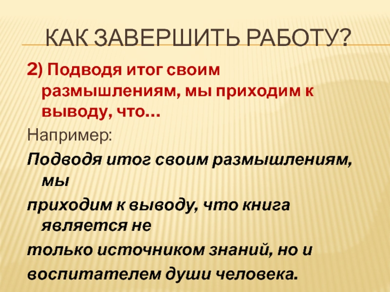 Завершая сочинение, выразите своё отношение к теме, предложенной автором.
