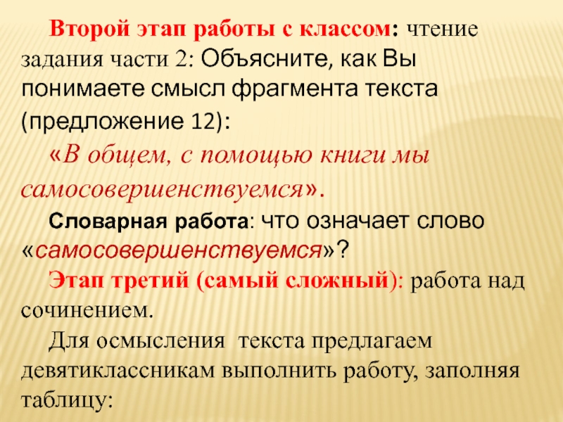 Слайд 6Второй этап работы с классом: чтение задания части 2: Объясните,