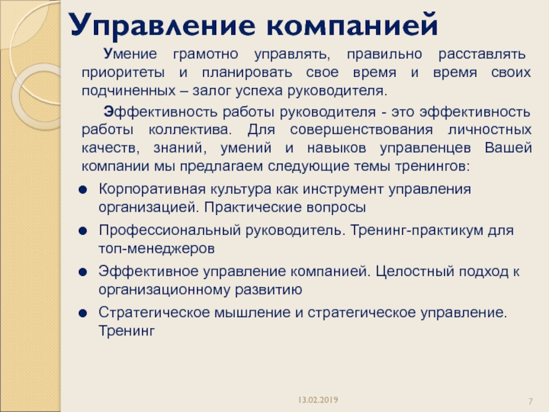Тренинги по менеджменту (управление компанией, управление подчиненными);