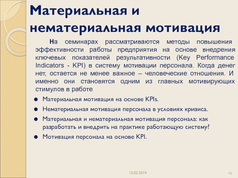 Indicators - KPI) в систему мотивации персонала. Когда денег нет, остается не менее важное – человеческие отношения. И именно они становятся одним из главных мотивирующих стимулов в работе
