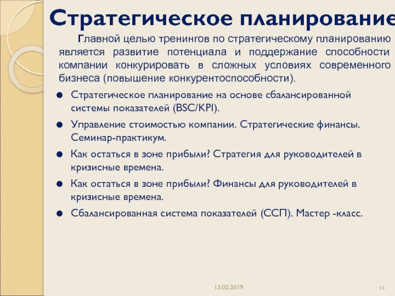 Стратегическое планирование на основе сбалансированной системы показателей (BSC/KPI).